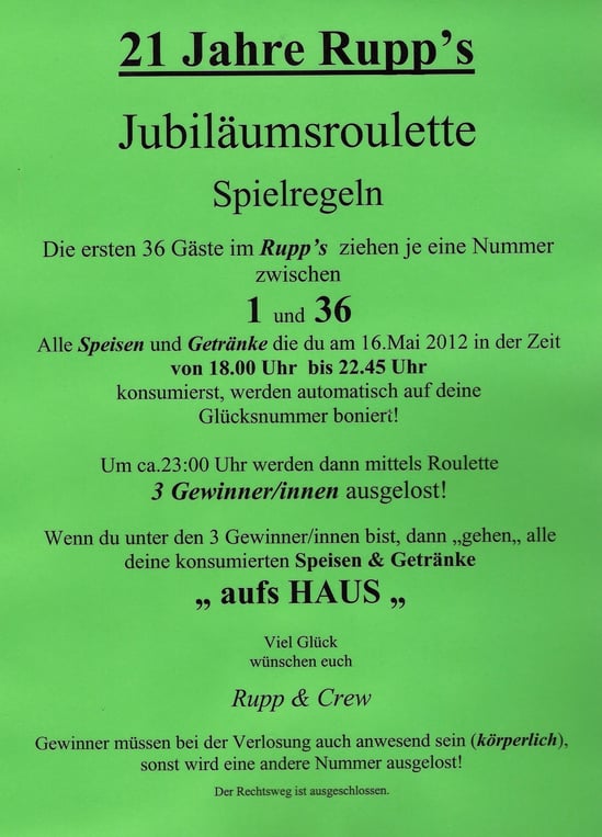21 Jahre Rupp's am Mi.16.Mai 2012